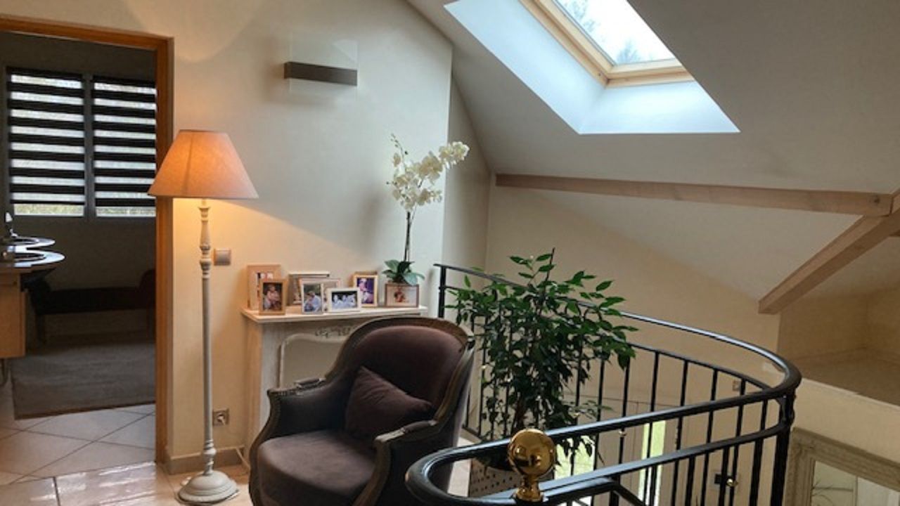 A l'étage trois chambres et une salle de jeux permettant une 4ième chambre, et une belle salle de bains avec WC, le tout prolongé par une grande mezzanine et un coin bureau.. Plancher chauffant sur carrelage et/ou parquet à l'étage.